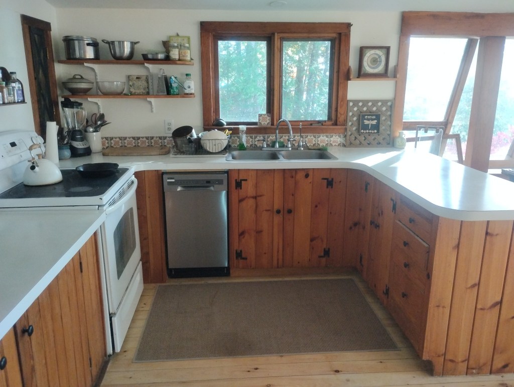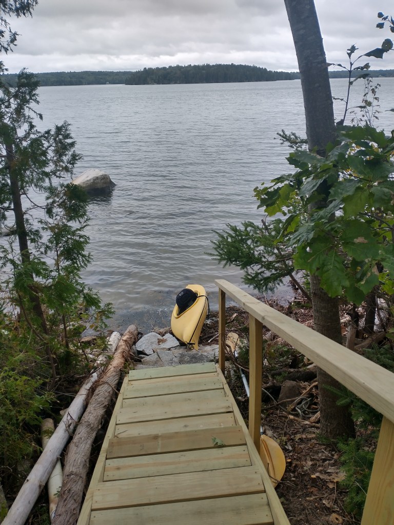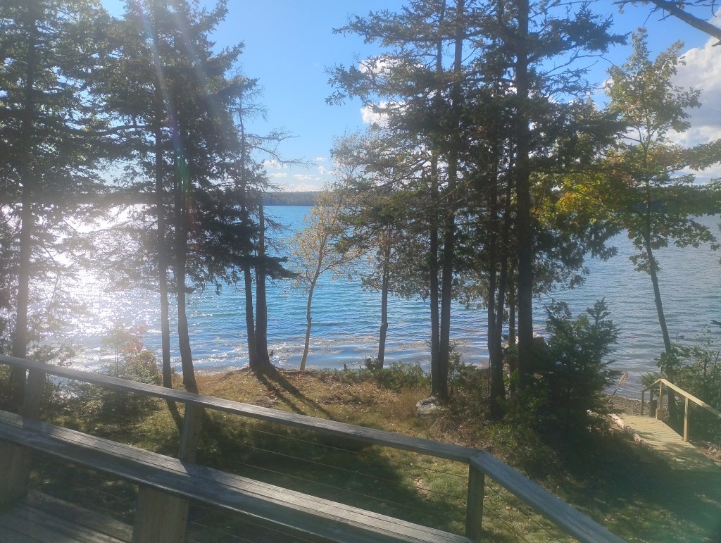 Kitchen appliances • Deck •Deck Chairs• Two full bathrooms, One half bath • Clothes washer and dryer • Non-smoking • Fragrance free (no incense, scented candles, or sprays • Seclusion/Privacy • Quiet neighborhood • Swimming (private in bay) • WIFI, DVD and VHS • stereo • Hiking/walking • rocky shore front, private access, kayaking (welcome to use our double kayak, two single kayaks, canoe, or row boat).