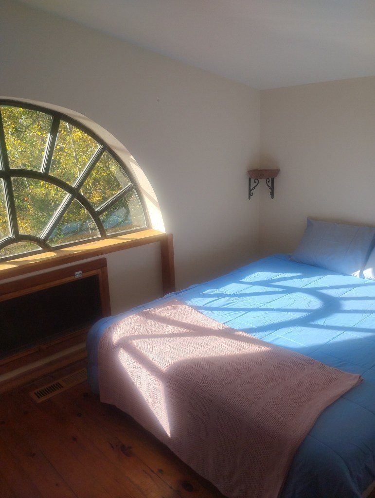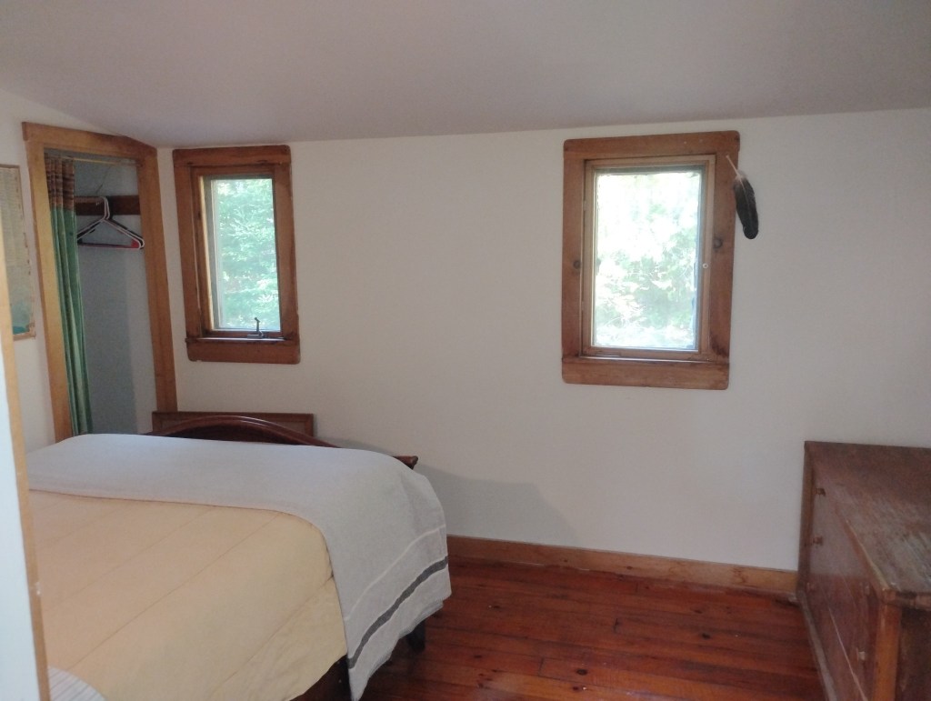 Bedroom 4 (with the sunset window) has a double bed, dresser and closet and view of the bay.